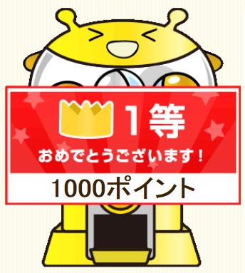 1,000pt(100円)です。3等でも100pt(10円)なので決して悪くないです。