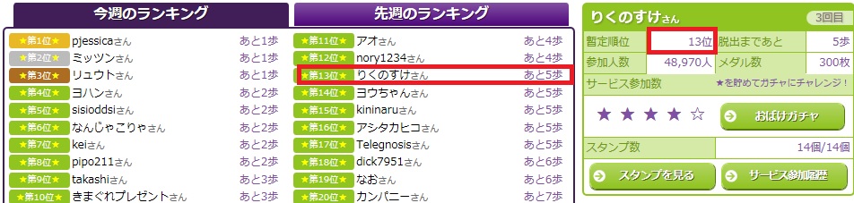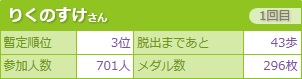 残り5歩という、移動距離がありますので、1位になることは限りなく難しいですが