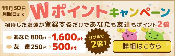 11月30日までお友達を紹介すると、紹介者とお友達双方がもらえるポイントが