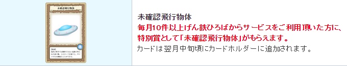 恐らく20件利用しても貰える「未確認飛行物体」は1枚だと思われるので10回利用したら