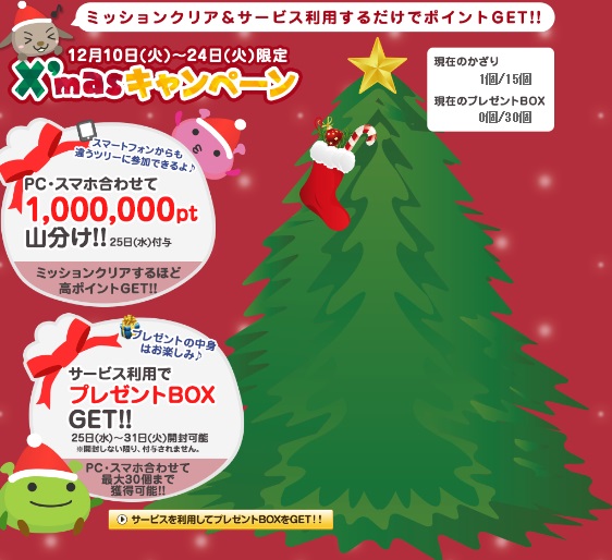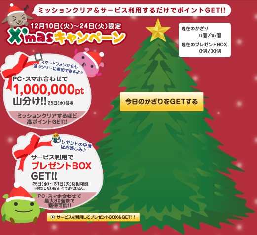 ・飾りの数が多いほど山分けで貰えるポイントが多くなります。