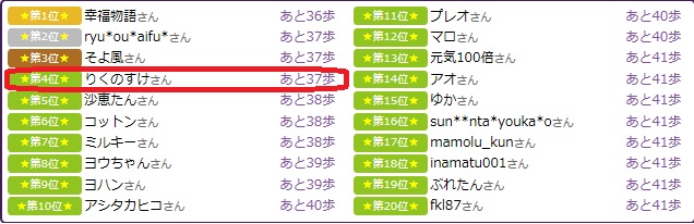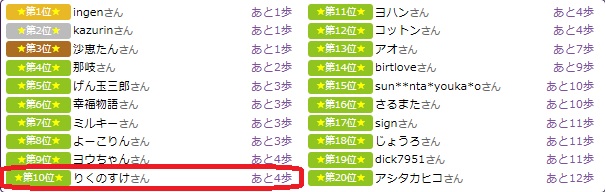 そして、そして順位はと言うと2位です。1位との差は僅か1歩。