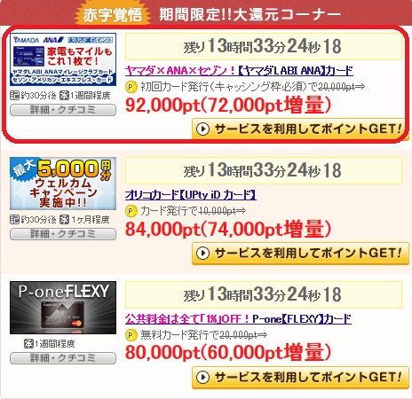 この2つともに72,000ポイント(7200円)これだけでも大変お得ですが