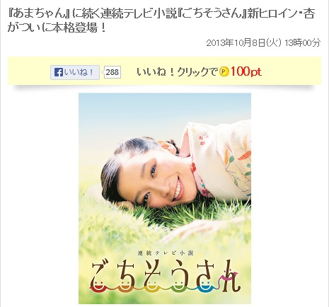 今日のニュースはこちら。連続テレビ小説『ごちそうさん』です。