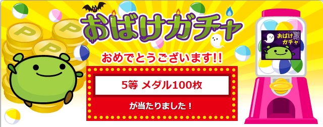 「脱出おばけハウス」からサービスに5回参加するとおばけガチャが引けます。