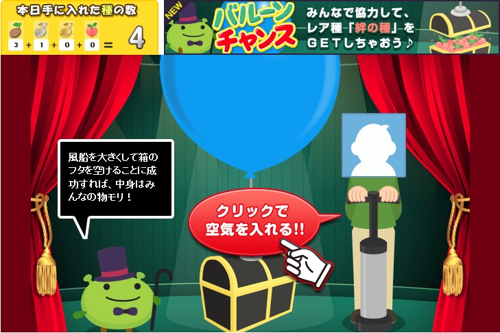 このゲームは他の『げん玉』ユーザーと協力して風船を膨らまして宝箱を開けることが