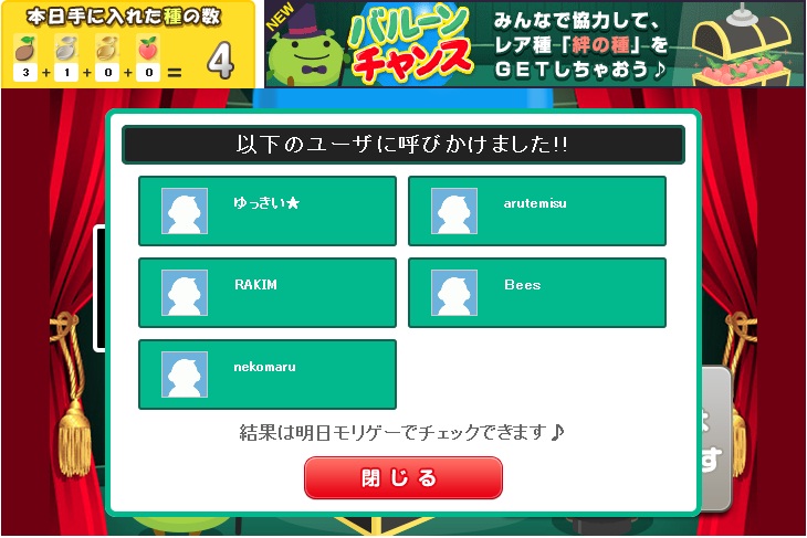 げん玉 モリゲーに新ゲーム登場!その名もバルーンチャンス!!の結果発表!