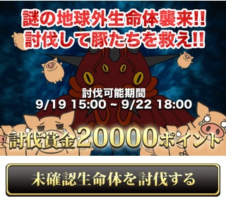 未確認生命体を討伐すると賞金20,000ポイント(2,000円)です。
