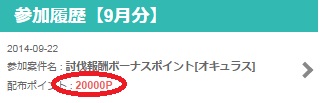 ちゃんと20,000pt(2,000円)GETです。やったぁ~!!