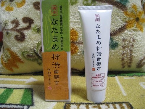 じゃ〜ん、今回紹介している商品で唯一、私の物「なたまめ柿渋歯磨き」