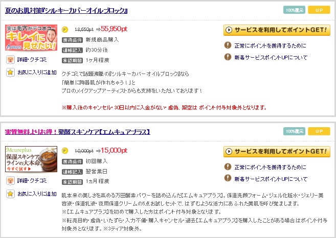 『げん玉』にも多くの100%還元商品が存在します。やはり女性向けの商品が多いですが・・