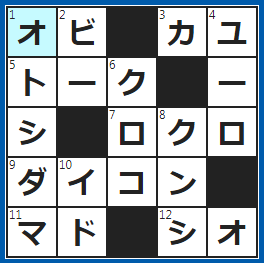 クロスワードの答え 2023/1/1 着物の上から腰に結ぶ布