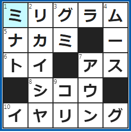 クロスワードの答え 2023/10/12 質量の単位。記号mg