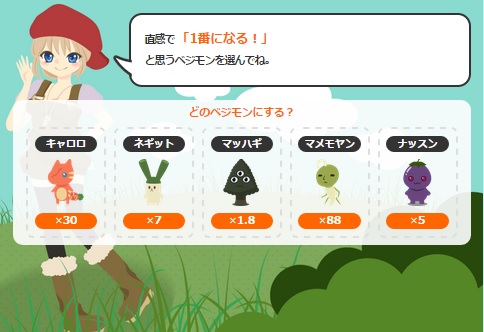 またまた、新ゲームが登場していました。その名も「ベジモンレース」。