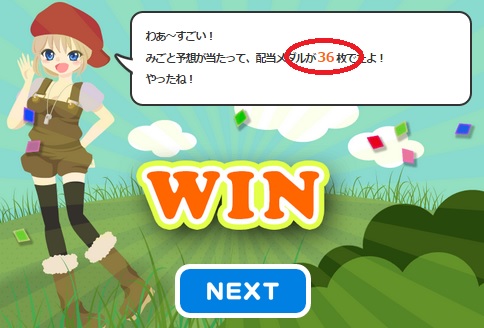 見事選んだキャラが1位になったら、キャラの倍率×20のメダルがもらえます。