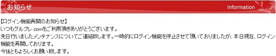 そんな『グルプレ』がしばらくの間、サイトメンテナンスの為ログインできなかったのです。