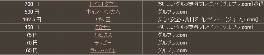 「ポイントタウン」がダントツの700円でした(私の登録サイトの中では)。
