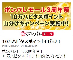 ハピタスでは、ポンパレモール3周年祭りと題したキャンペーンが開催中です。