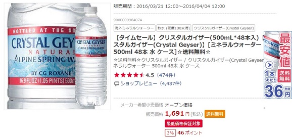 クリスタルカイザー、1,691円を購入すると46ポイント(Ponta)還元されます。