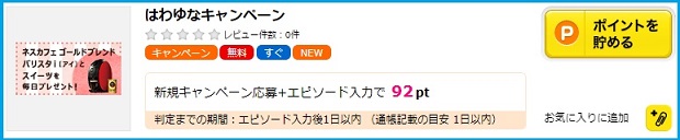 「はわゆなキャンペーン」のポイント獲得条件はコチラ。
