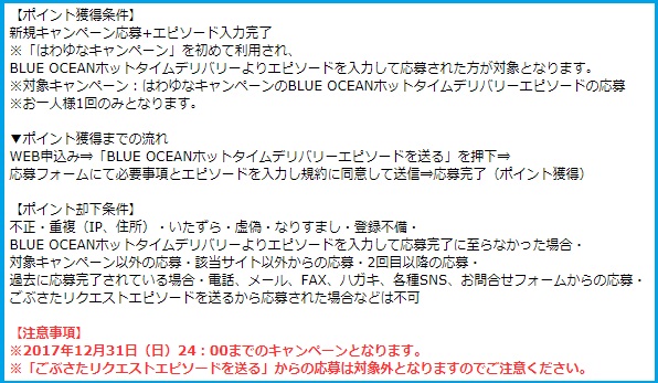 ※2017年12月31日までのキャンペーンとなりますと赤字で書かれていますが、私がポイントをもらえたということはハピタス側で注意分の削除を忘れたが間違ったと思われますので安心してご利用ください。