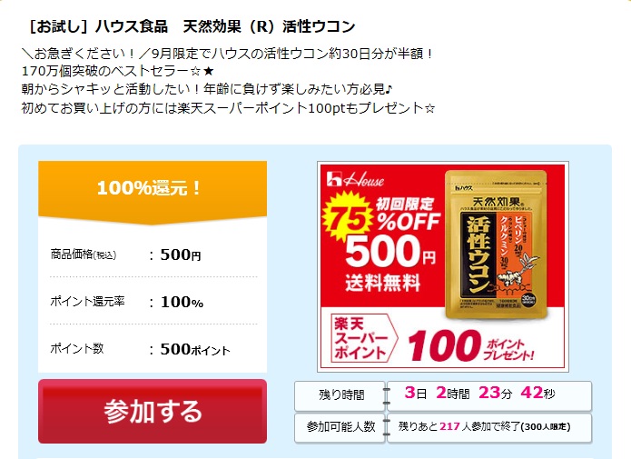 活性ウコンを実質無料で手にいれよう