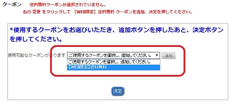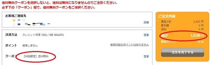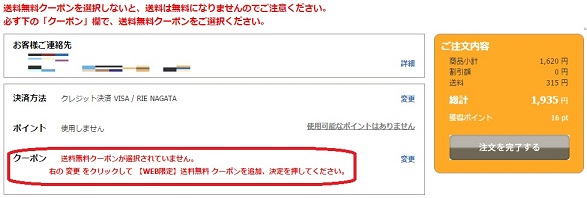 また、そのまま購入してしまうと送料がかかりますので、必ず、送料無料クーポンを