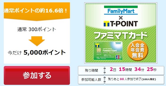 ファミマTカード発行で5,000円分のポイントが貰えます。