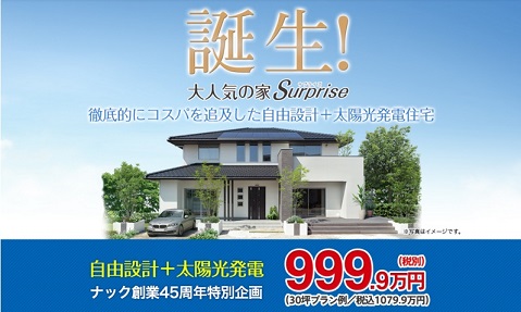 太陽光発電が搭載された住宅が、999.9万円から建築できるみたいでちょっと気になります。