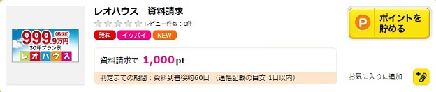 ハピタス レオハウス資料請求で1,000円のお小遣い。