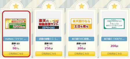 ハピタス」にログイン後、ページ中ほどの「ハピタスセレクション」コーナーに