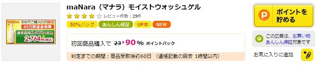 maNara(マナラ)モイストウォッシュゲルが90%ポイント還元中。