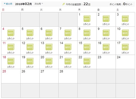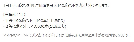 一応抽選と言う形をとっていますが、私は毎日1pt(1円相当)が当たっています。