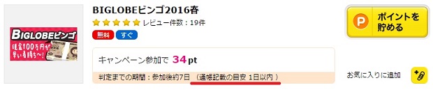 BIGLOBEが開催しているビンゴ大会に参加することで案件利用になります。