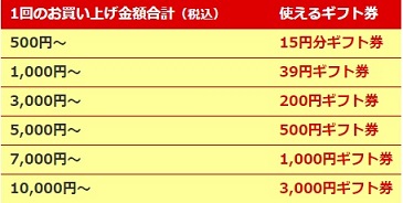 - 期間中、購入金額に応じて使えるギフト券を全員に配布されます!