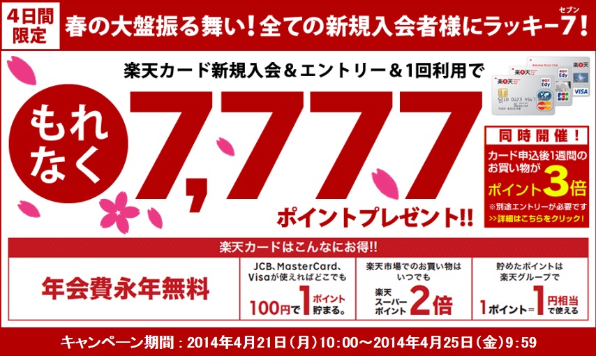 私が楽天カード発行した時、こんなキャンペーンやっていなかったから正直うらやましい。