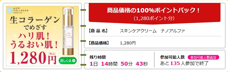 100%ポイントバックとは? この商品(生コラーゲン)の場合。