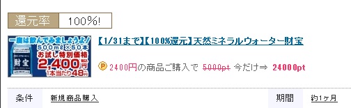 『ポイントタウン』で『天然ミネラルウォーター財宝』50本実質無料 再販!!』