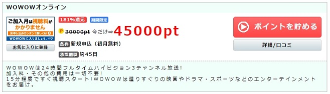 「ポイントインカム」にいい案件がないか探した結果「WOWOWオンライン」を利用。