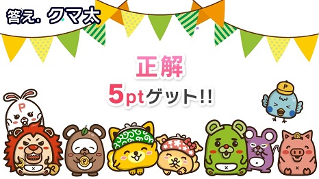 クイズに正解すると5pt、間違ってしまって1pt貰えます。