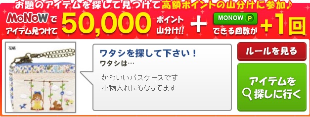 50,000ポイント山分け、画像商品を見つけてクリックで山分けに参加しよう。