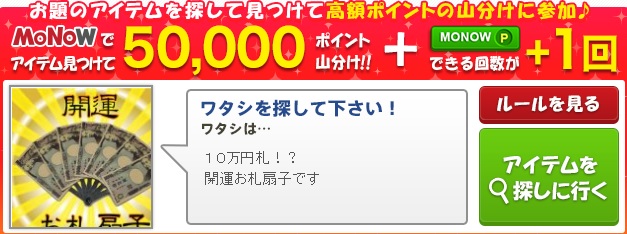 50,000ポイント山分け、画像商品を見つけてクリックで山分けに参加しよう。