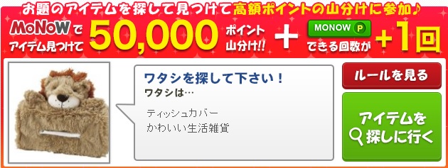 50,000ポイント山分け、画像商品を見つけてクリックで山分けに参加しよう。