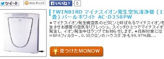 探すアイテムは「TWINBIRD マイナスイオン発生空気清浄機 (12畳) パール...」 です。
