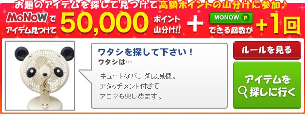 50,000ポイント山分け、画像商品を見つけてクリックで山分けに参加しよう。