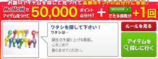 50,000ポイント山分け、画像商品を見つけてクリックで山分けに参加しよう。