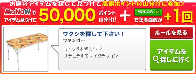 50,000ポイント山分け、画像商品を見つけてクリックで山分けに参加しよう。