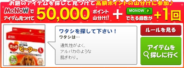 50,000ポイント山分け、画像商品を見つけてクリックで山分けに参加しよう。