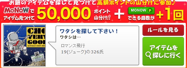 50,000ポイント山分け、画像商品を見つけてクリックで山分けに参加しよう。
