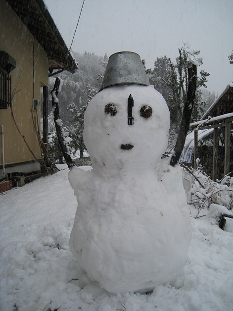 早速、庭で小さな鎌倉と大きな雪だるまを作って遊びました。